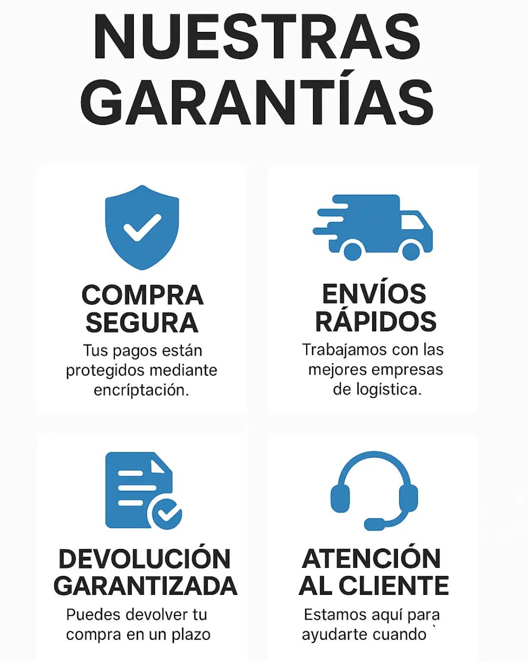 Todos los productos salen en empaque reforzado, testeados antes del envío. Tu compra viaja segura y cubierta ante cualquier inconveniente.